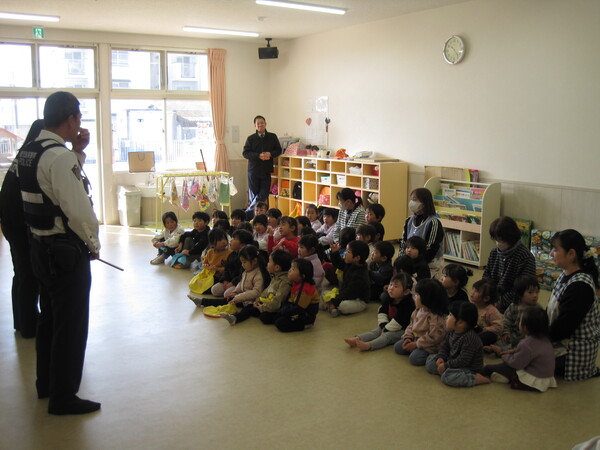 伊佐・湧水警察署へ講師派遣を依頼し、職員・園児を対象とした防犯訓練を実施しました。